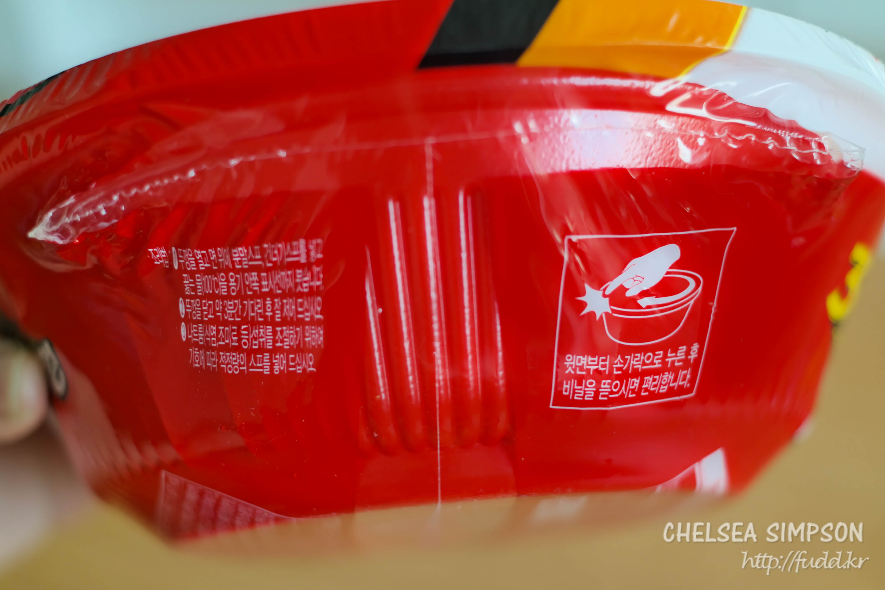 컵라면 포장 옆부분을 보면 비닐을 뜯는 방법이 안내되어있다.