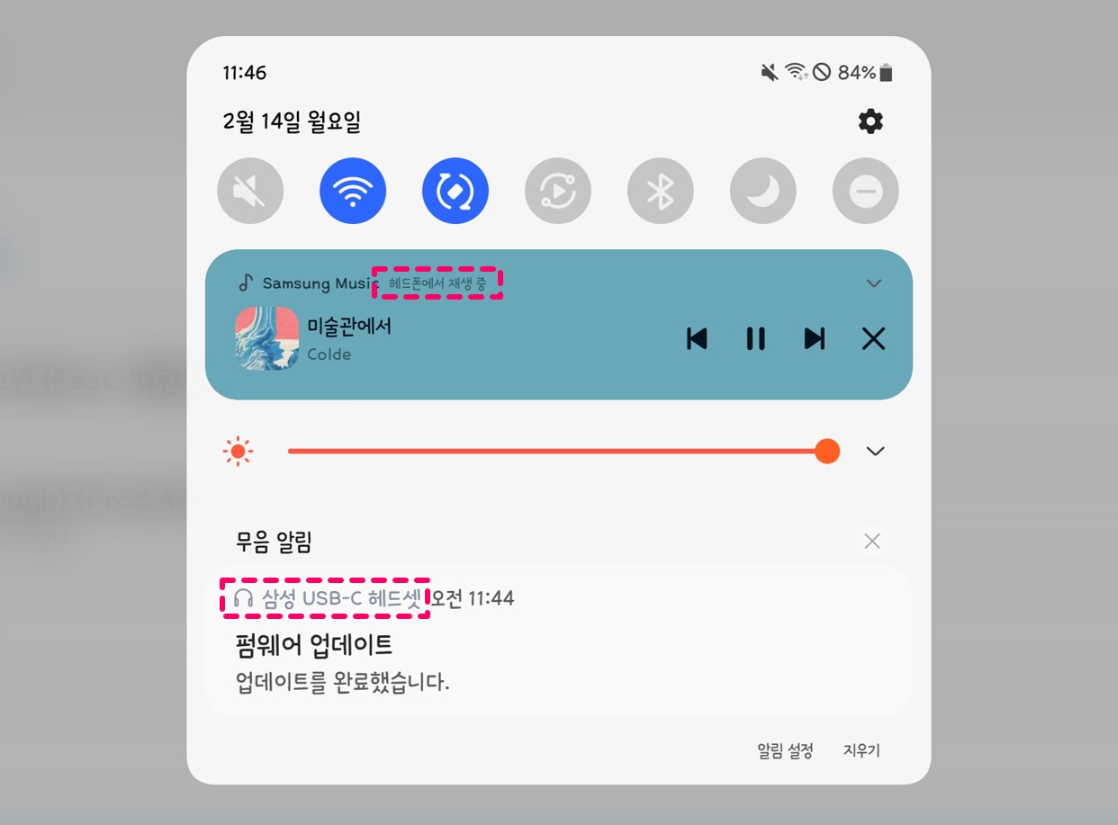 처음 연결했을 때는 삼성 USB-C 헤드셋에서 펌웨어를 업데이트하라는 안내문이 뜬다.