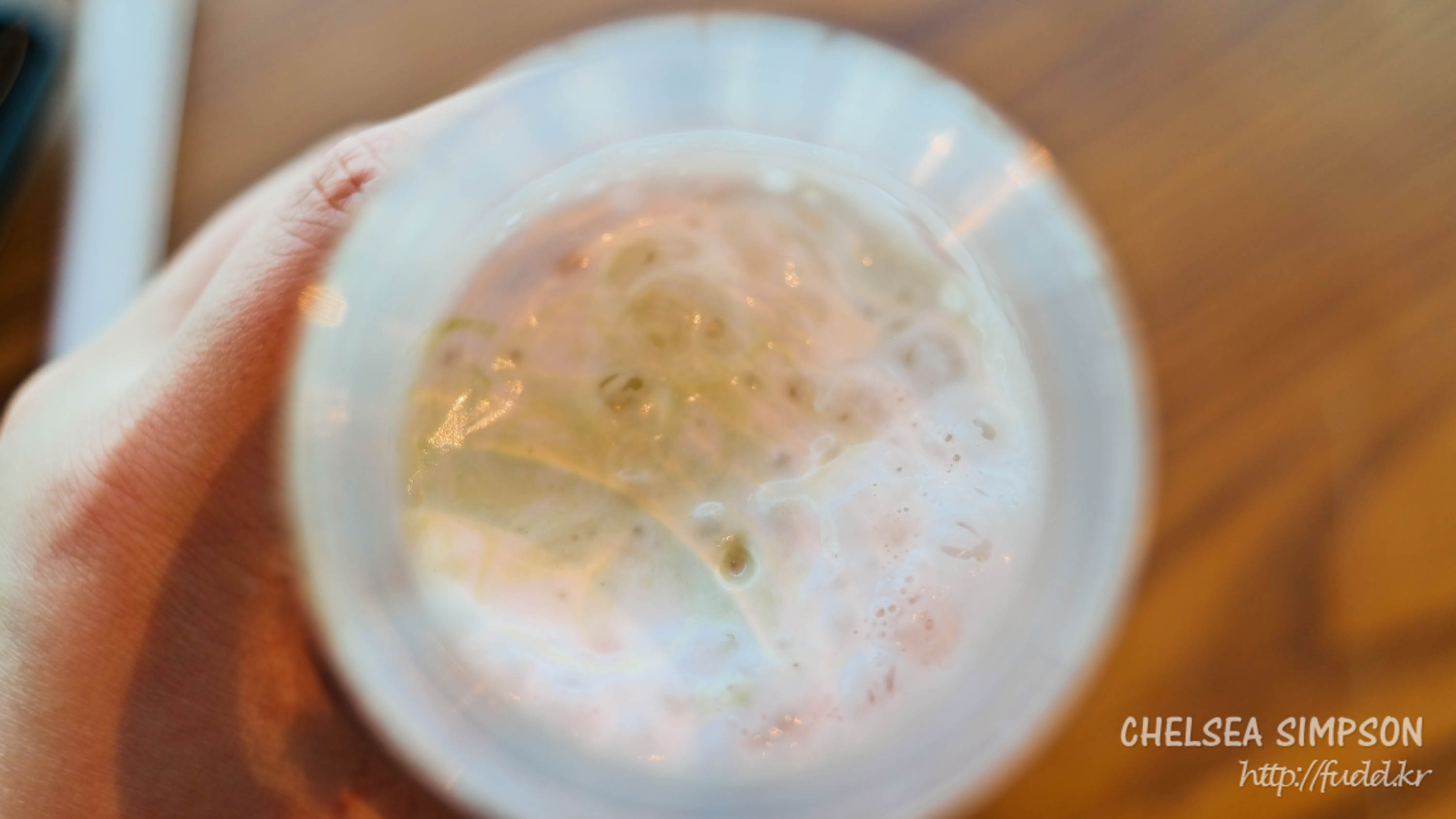 그리고 얼음이 녹기 전에 마시는 게 달달한 딸기맛과 풋풋한 녹차맛이 잘 느껴졌다.