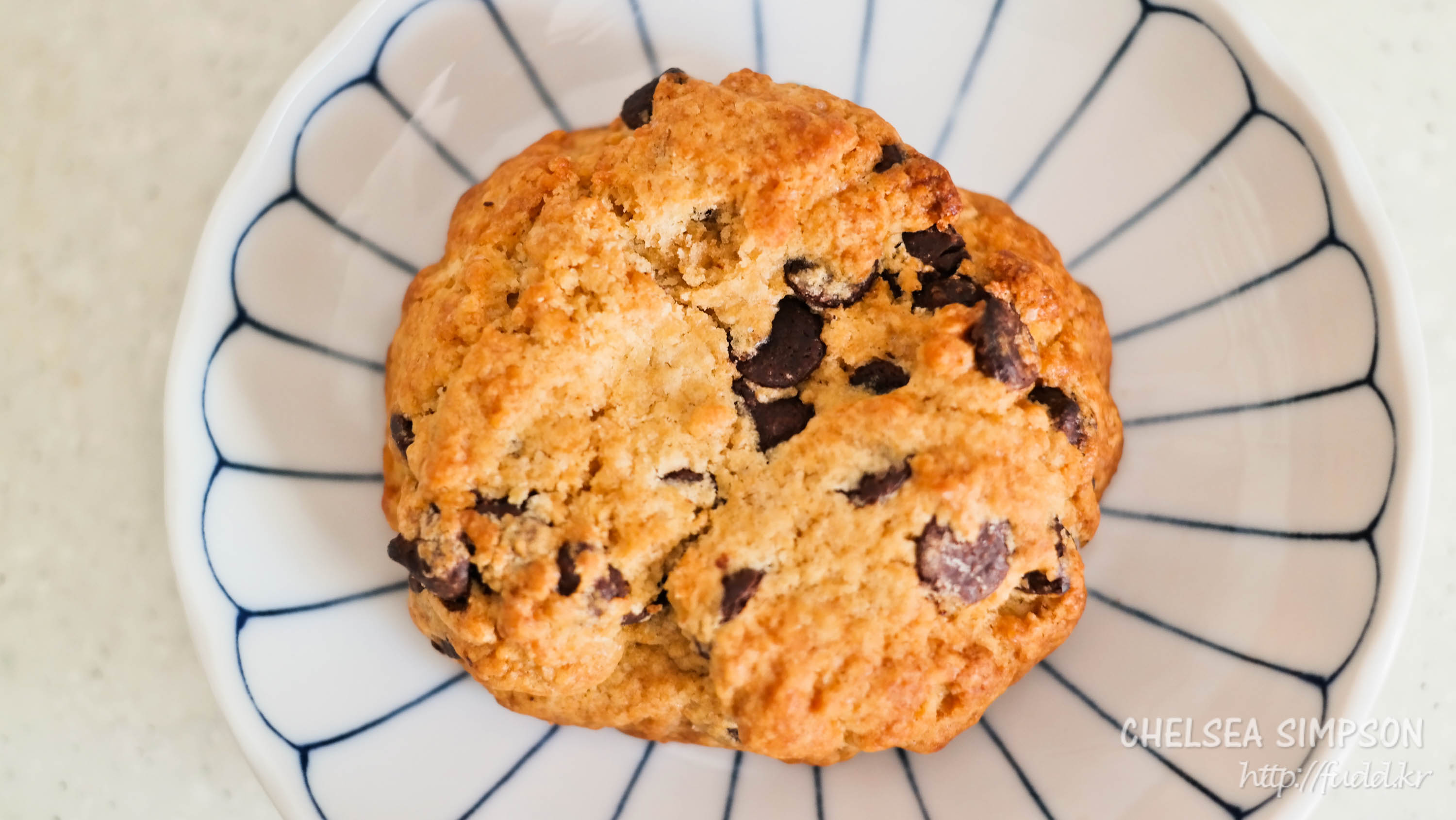 묵직한 쿠키 속에 초콜릿이 넉넉하게 박혀있다.
