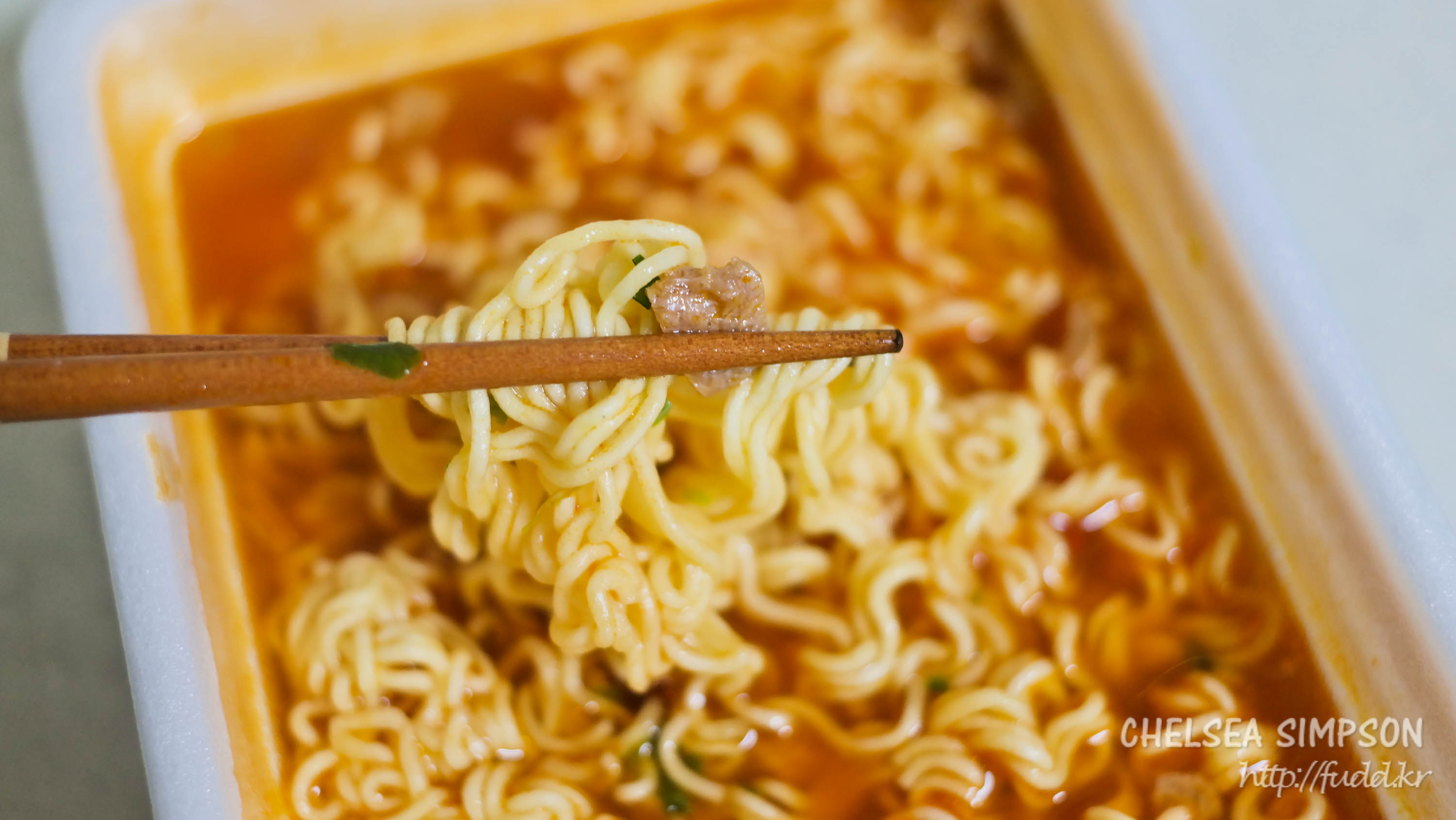 조리법은 끓는 물을 내부 표시선까지 붓고 3분 기다리는 것.