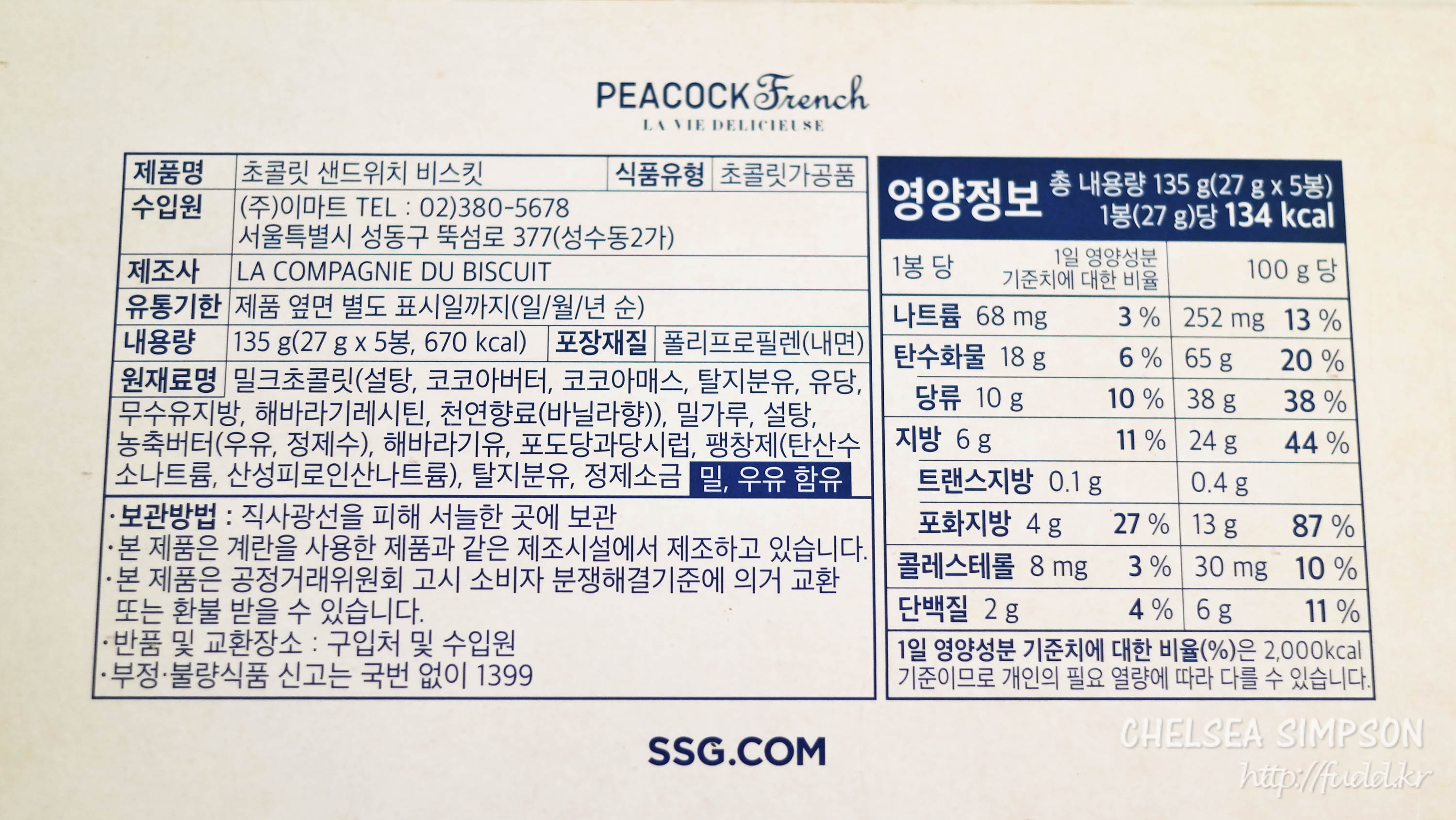 [이마트]피코크 초콜릿 샌드위치 비스킷(135g) 구매 후기, 초코과자 추천