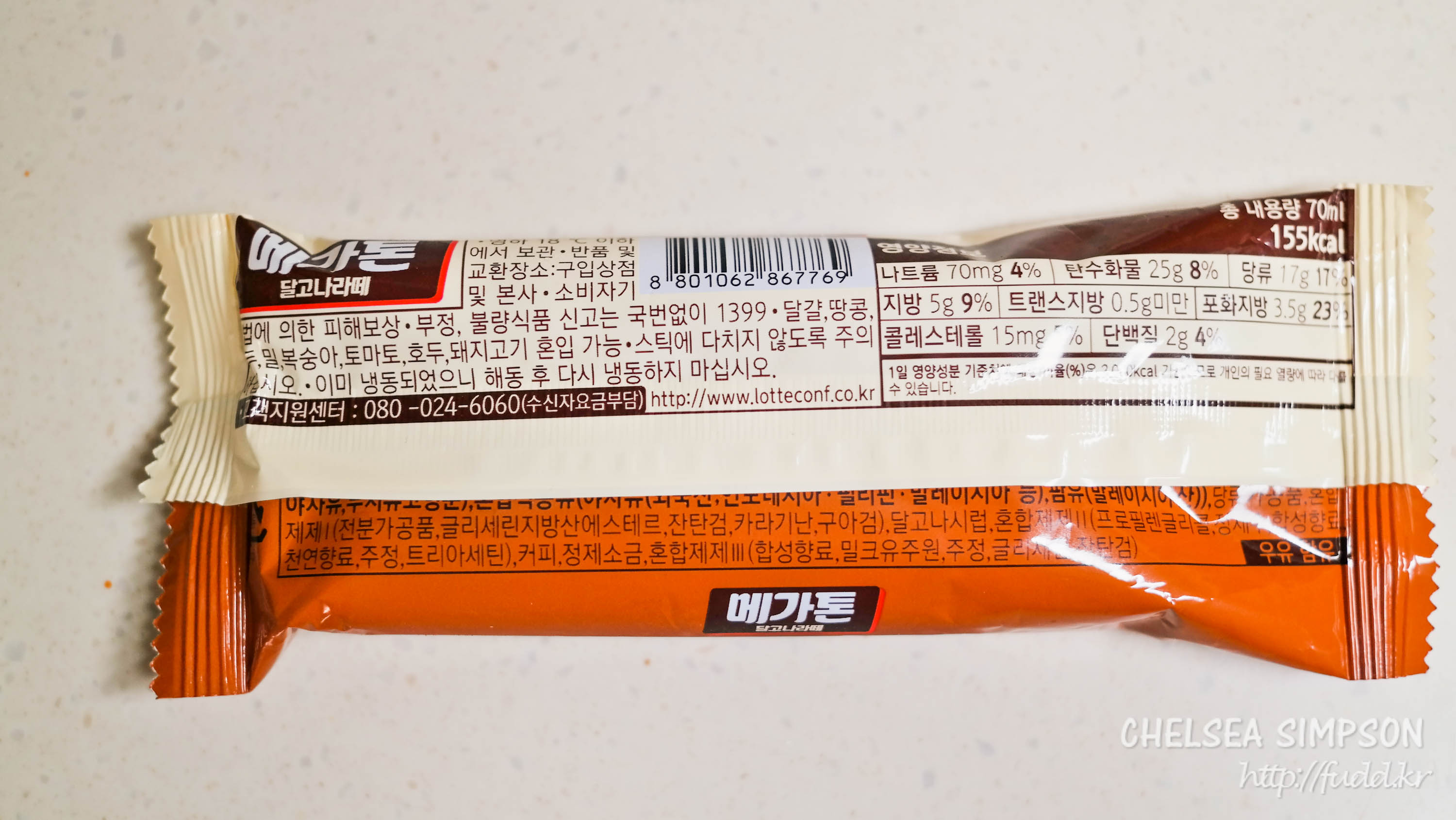 캐러멜맛 아이스크림 메가톤 바에 달고나시럽을 넣은 제품이다.