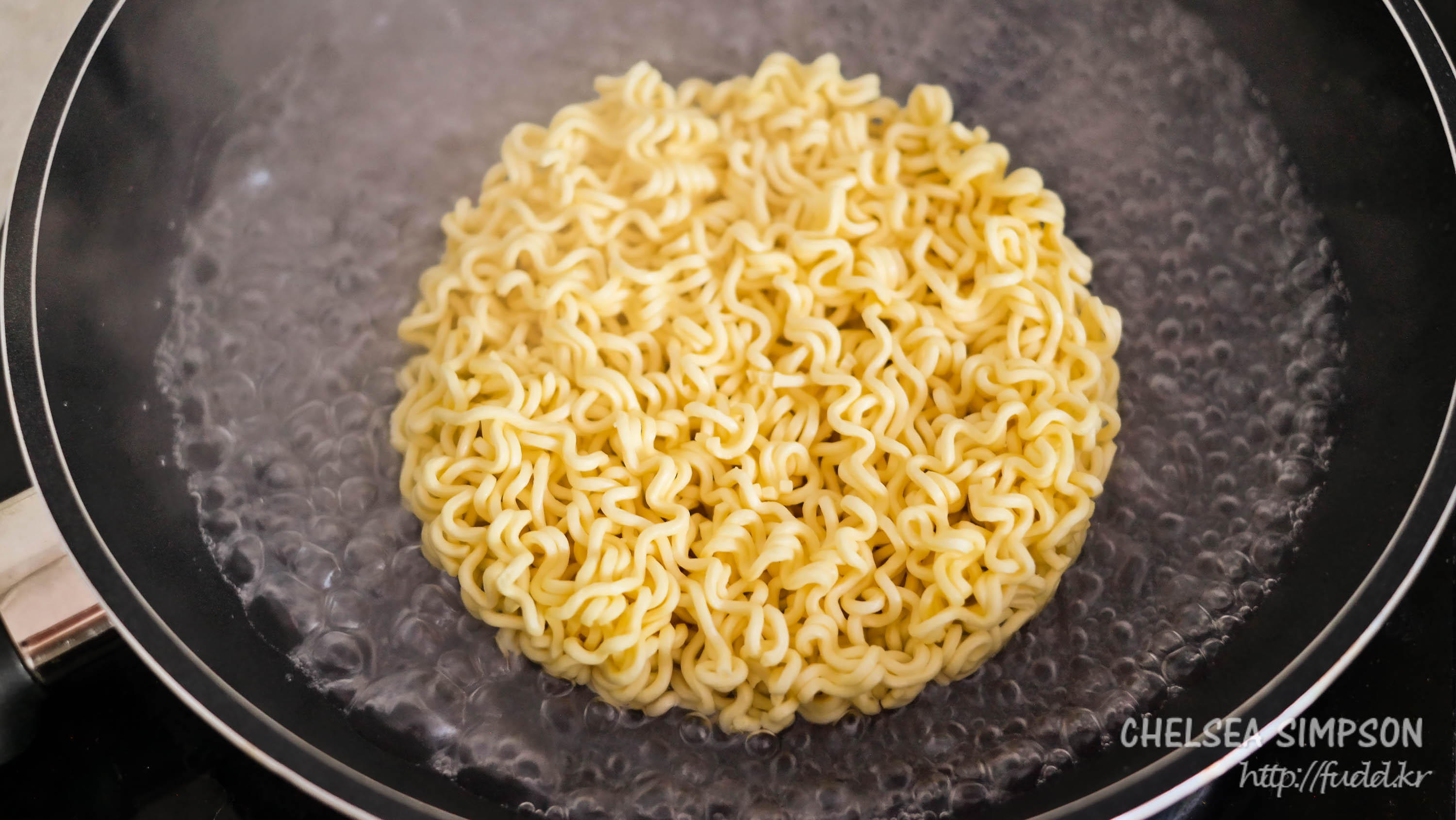 물을 끓인 다음 버리는 과정이 귀찮아서 그냥 처음부터 물을 적게 잡고 면을 삶기 시작했다.