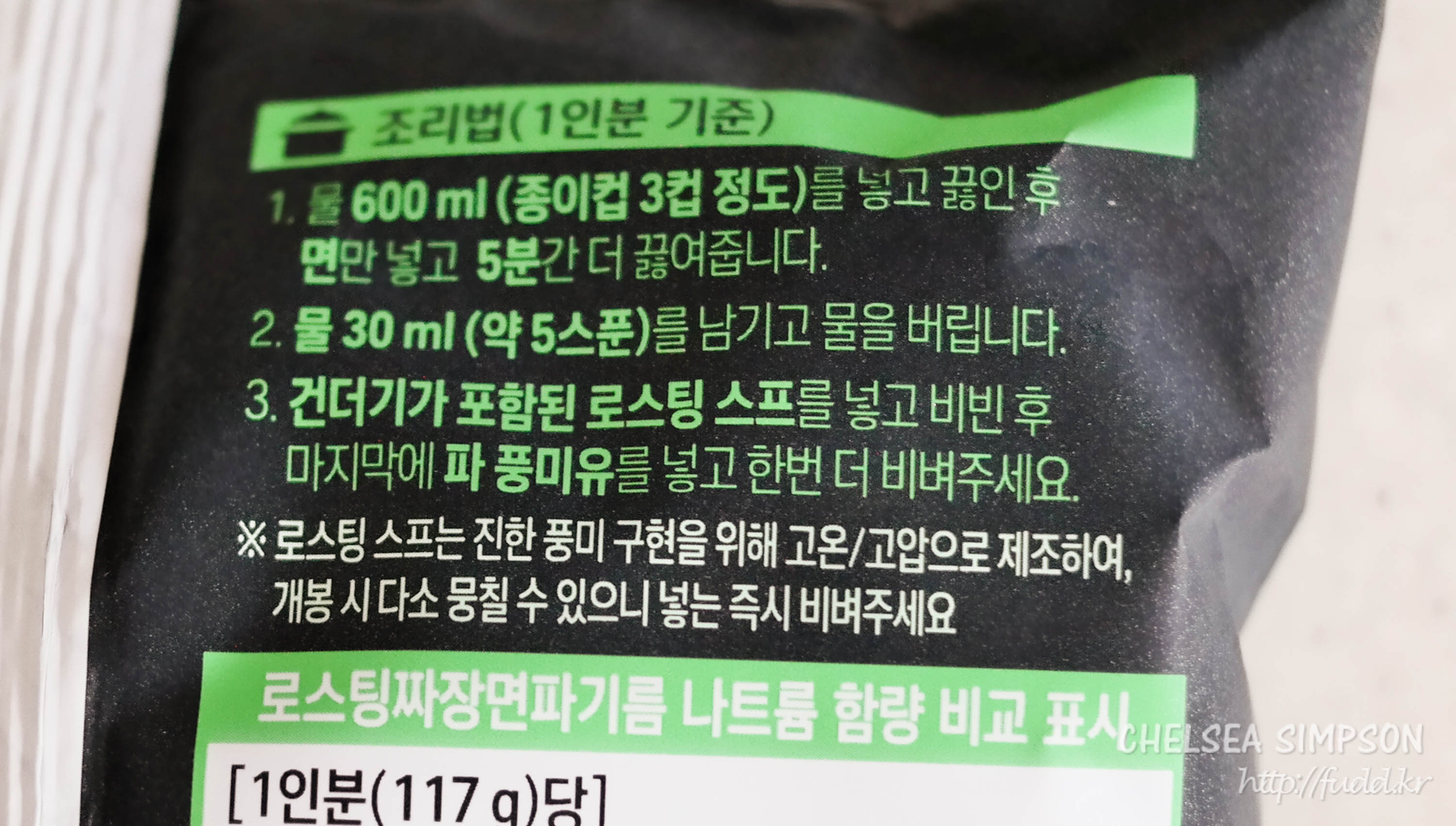 열량이 460kcal로 보통 짜장라면에 비해 약간 적은 편인데 중량도 117g으로 가볍기 때문인 이유도 있는 것 같다.