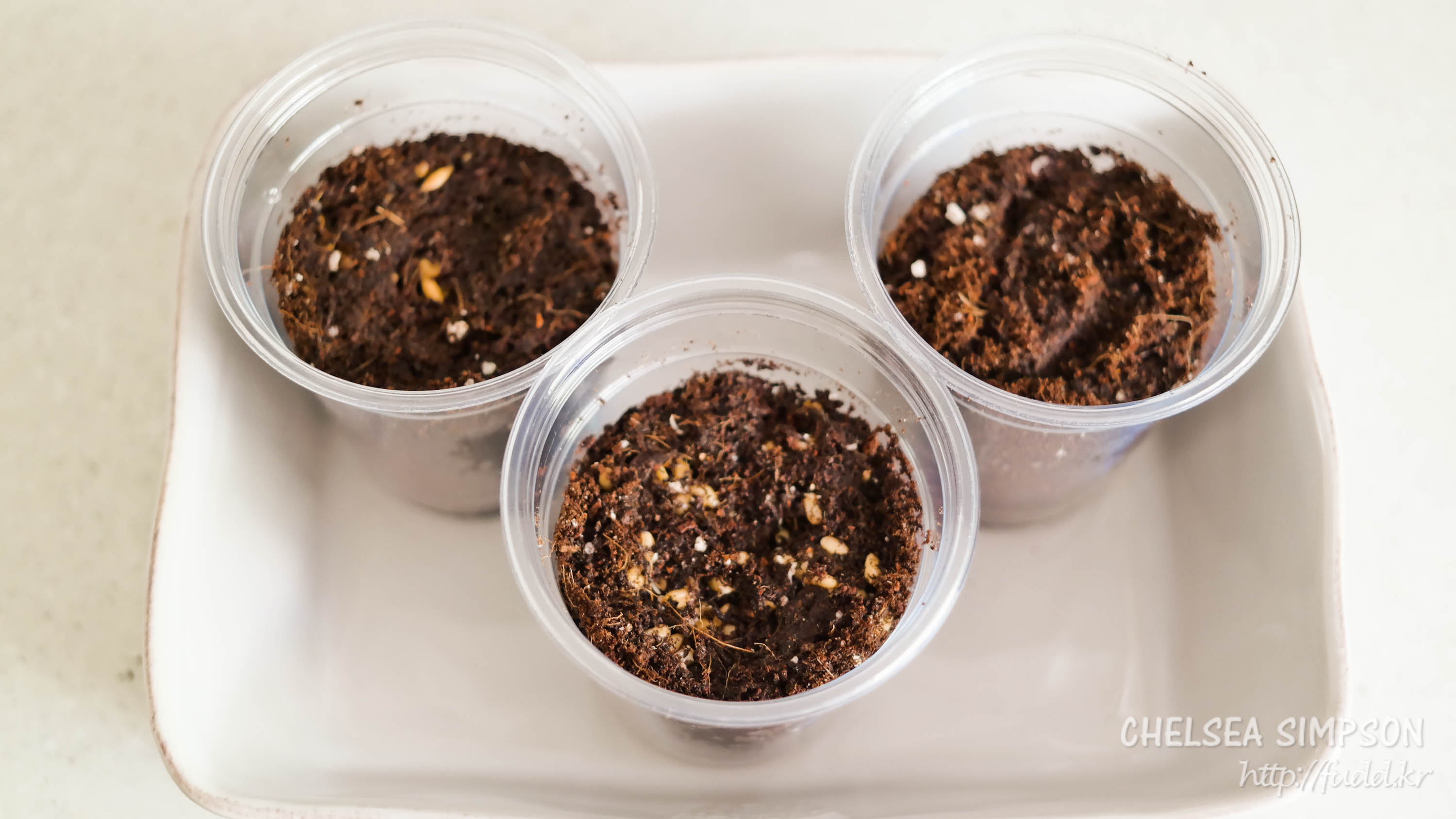 흙 위에 씨앗을 얹고 그 위에 흙을 조금 더 뿌려주면 된다.