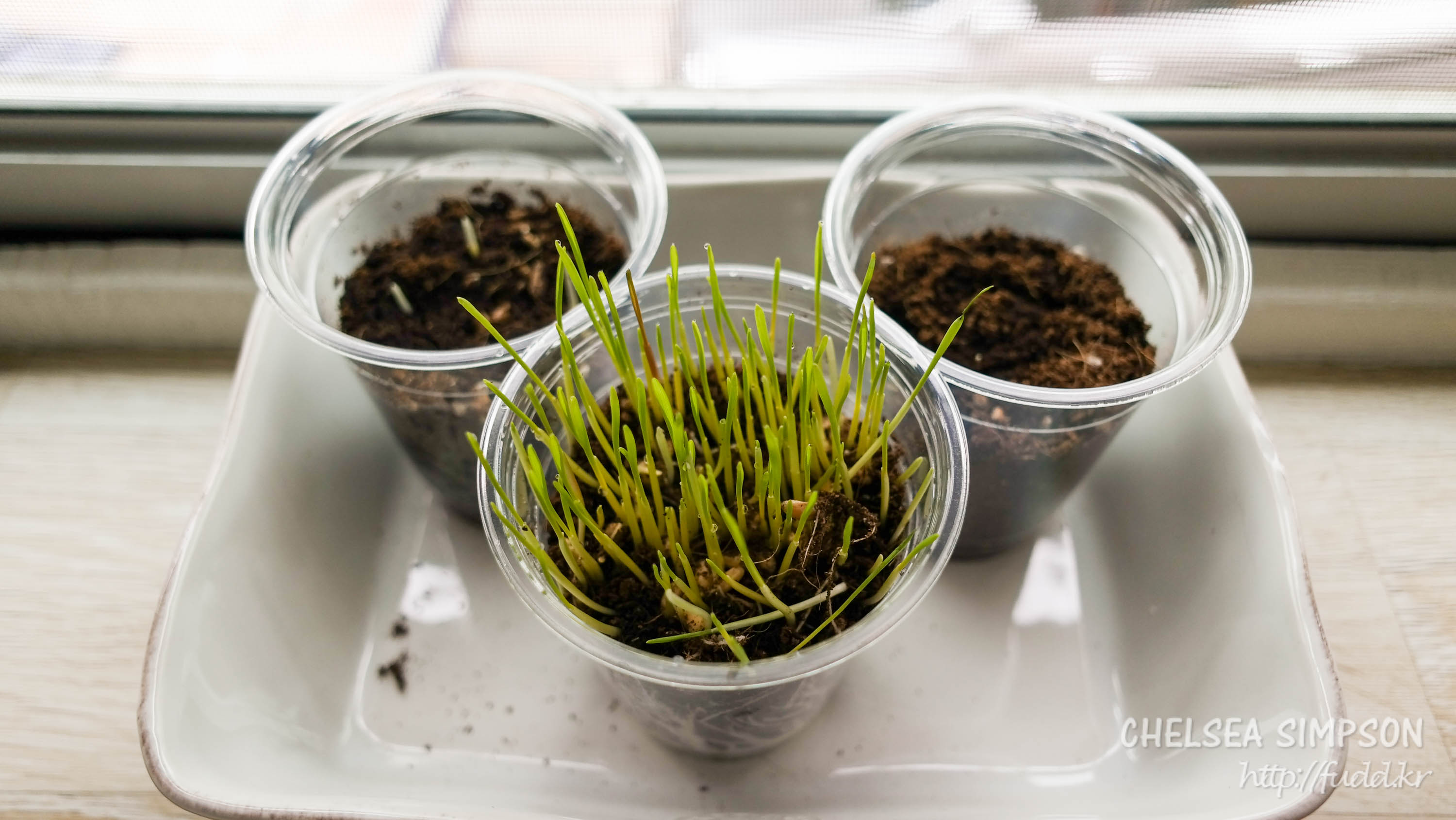 캣그라스 심은 지 이틀째.