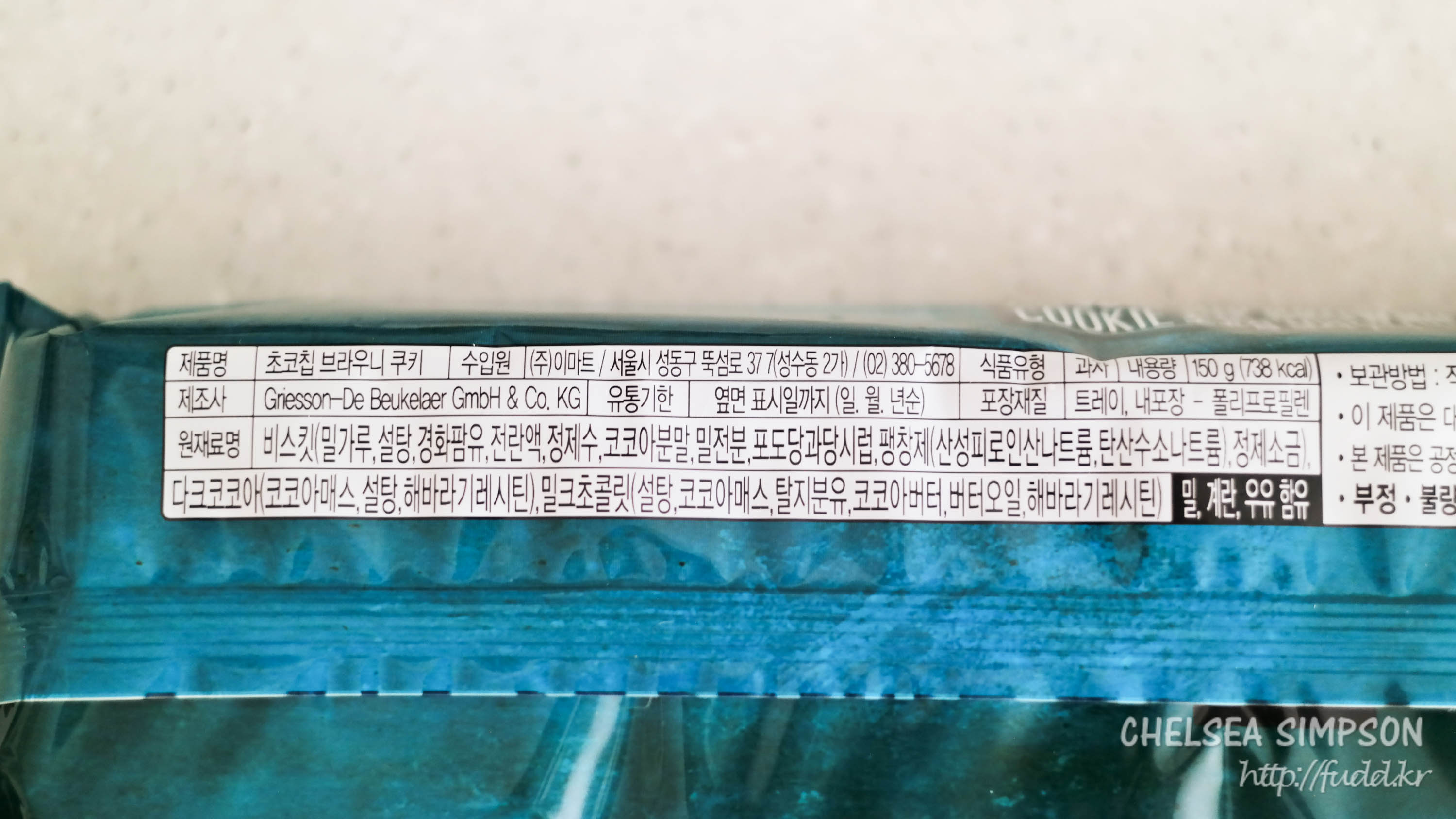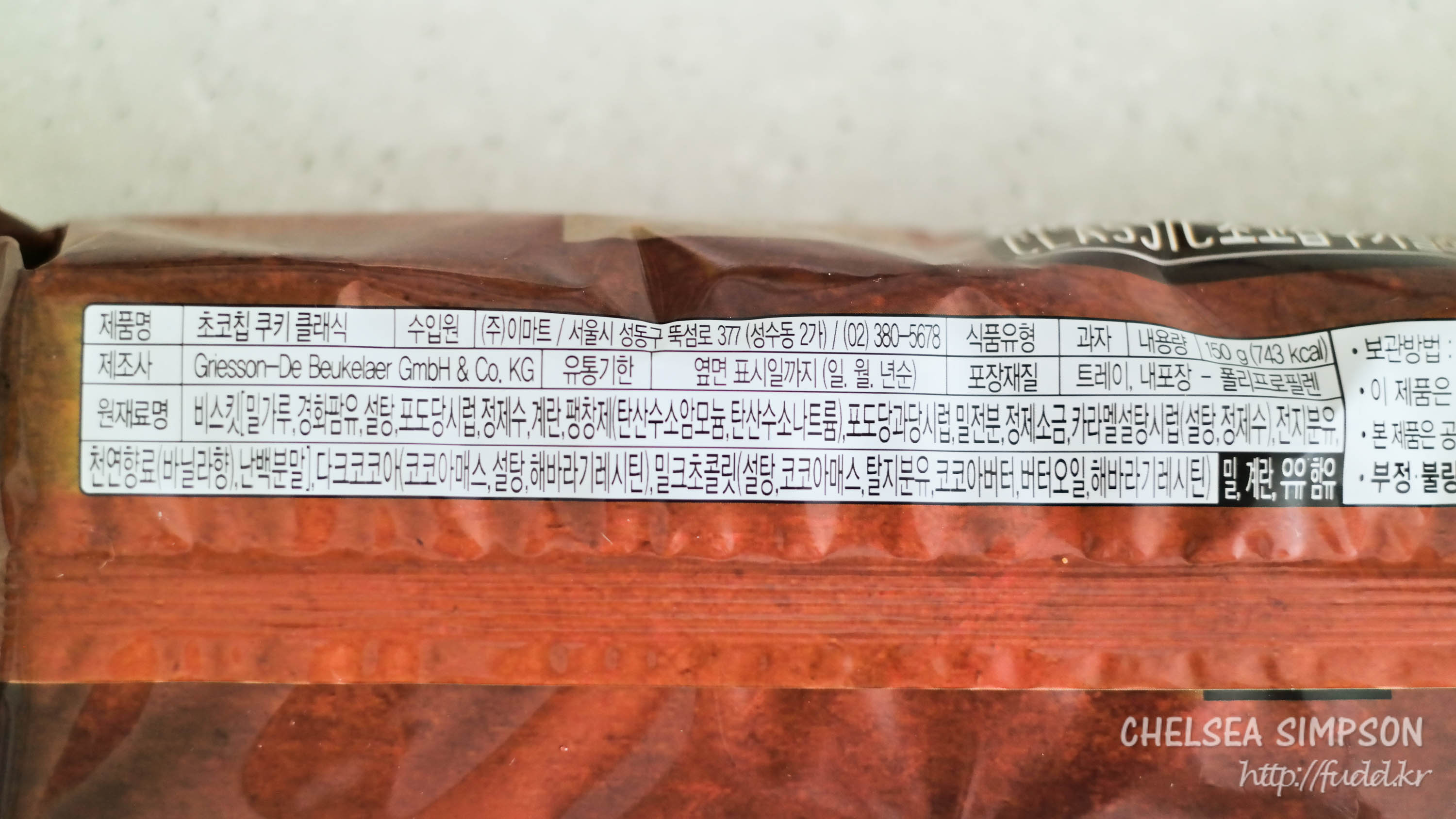 속에 들어있는 초콜칩은 밀크 초콜릿이고(함량 10.15%), 제조국은 독일이다.
