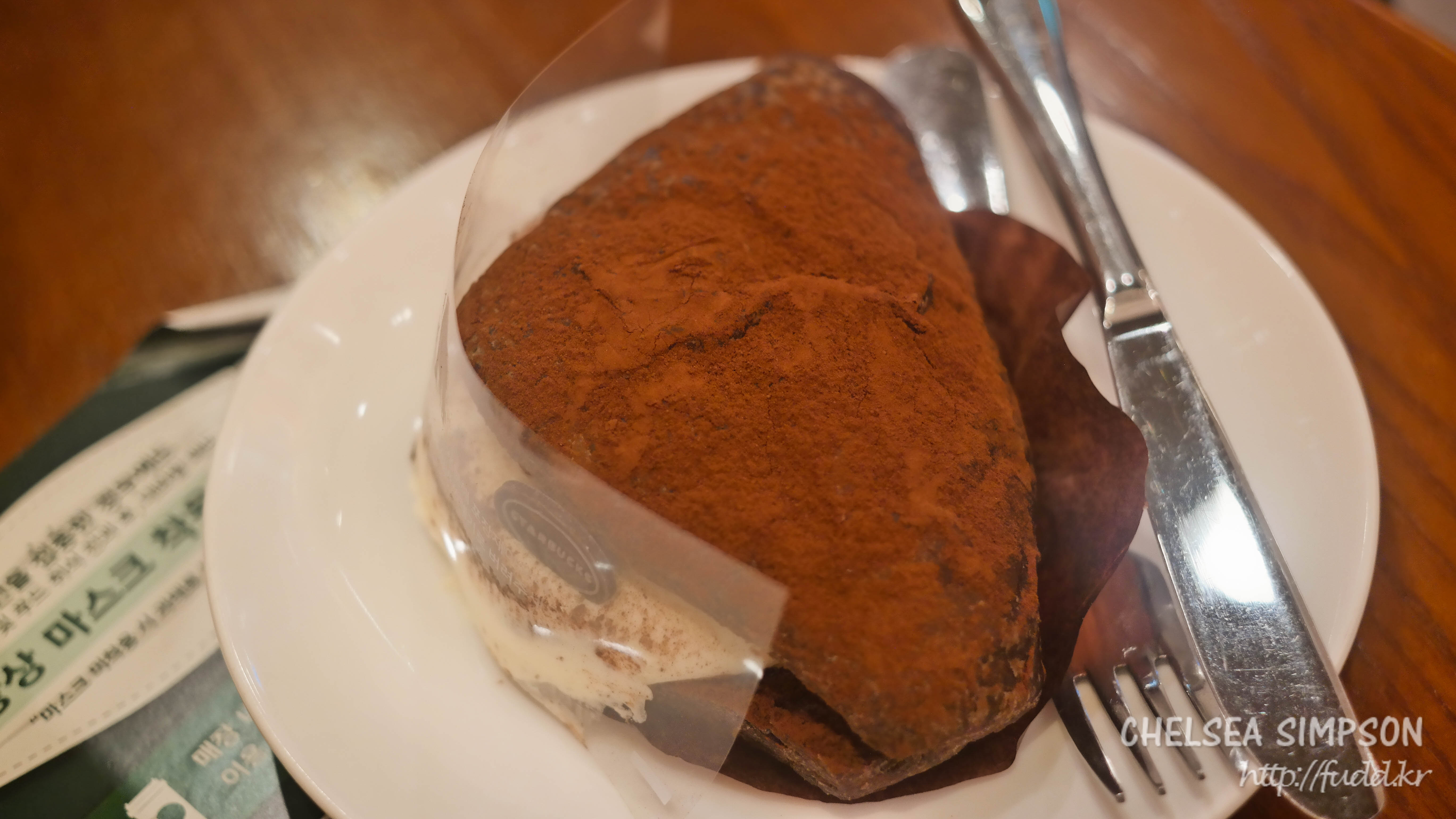 부드럽고 달콤한 마스카포네 우유크림을 가득 품은 초콜릿 데니쉬에 커피 시럽, 코코아 파우더를 더했다고 한다.