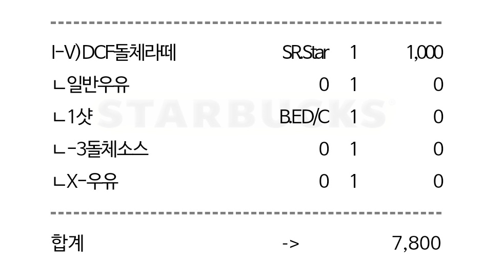 나의 아이스 디카페인 돌체 라떼 커스텀은 위와 같다.
