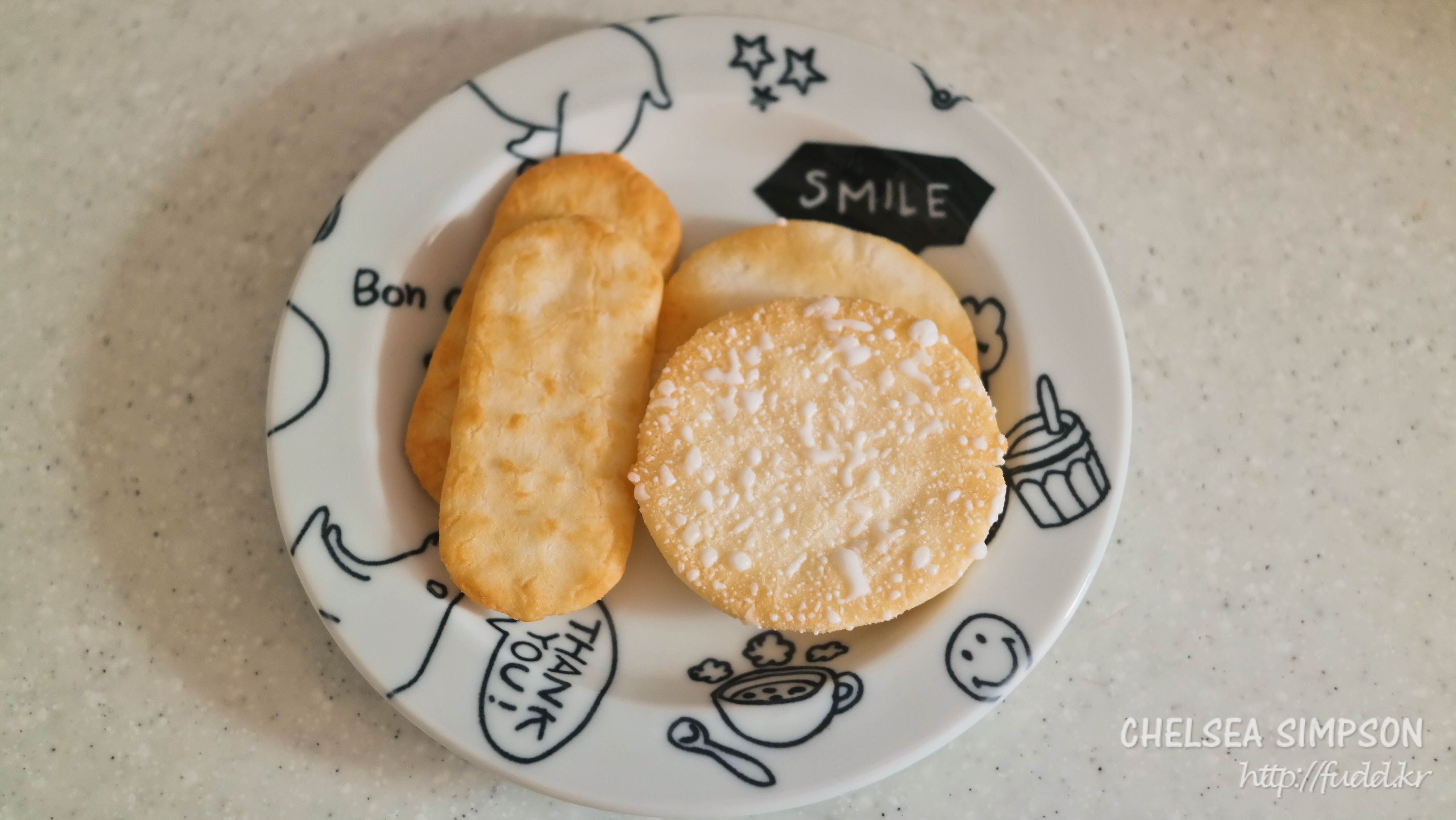 쌀과자인데다가 유처리제품이어서 깨물 때 아주 파삭거리는 것이 특징.