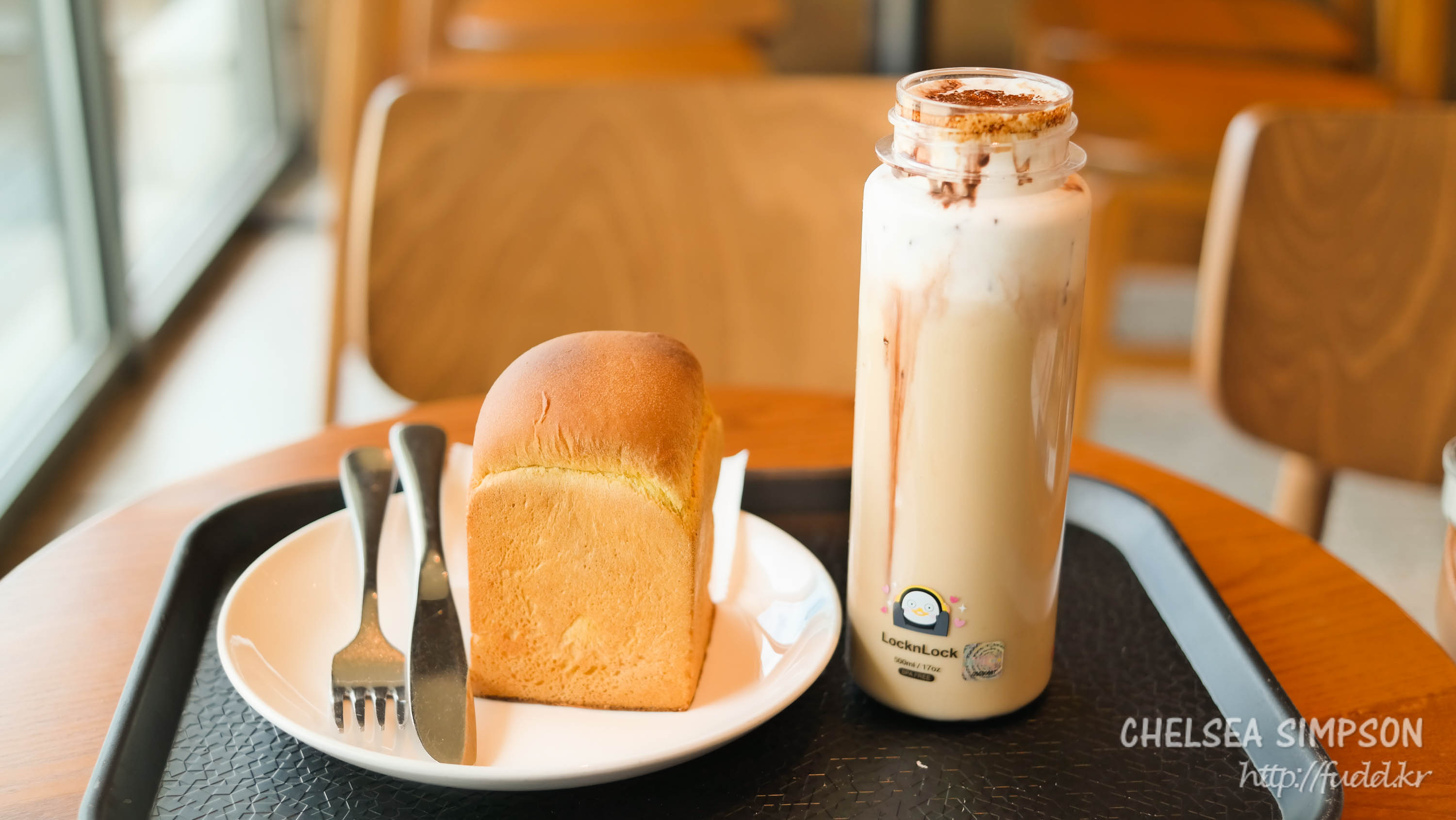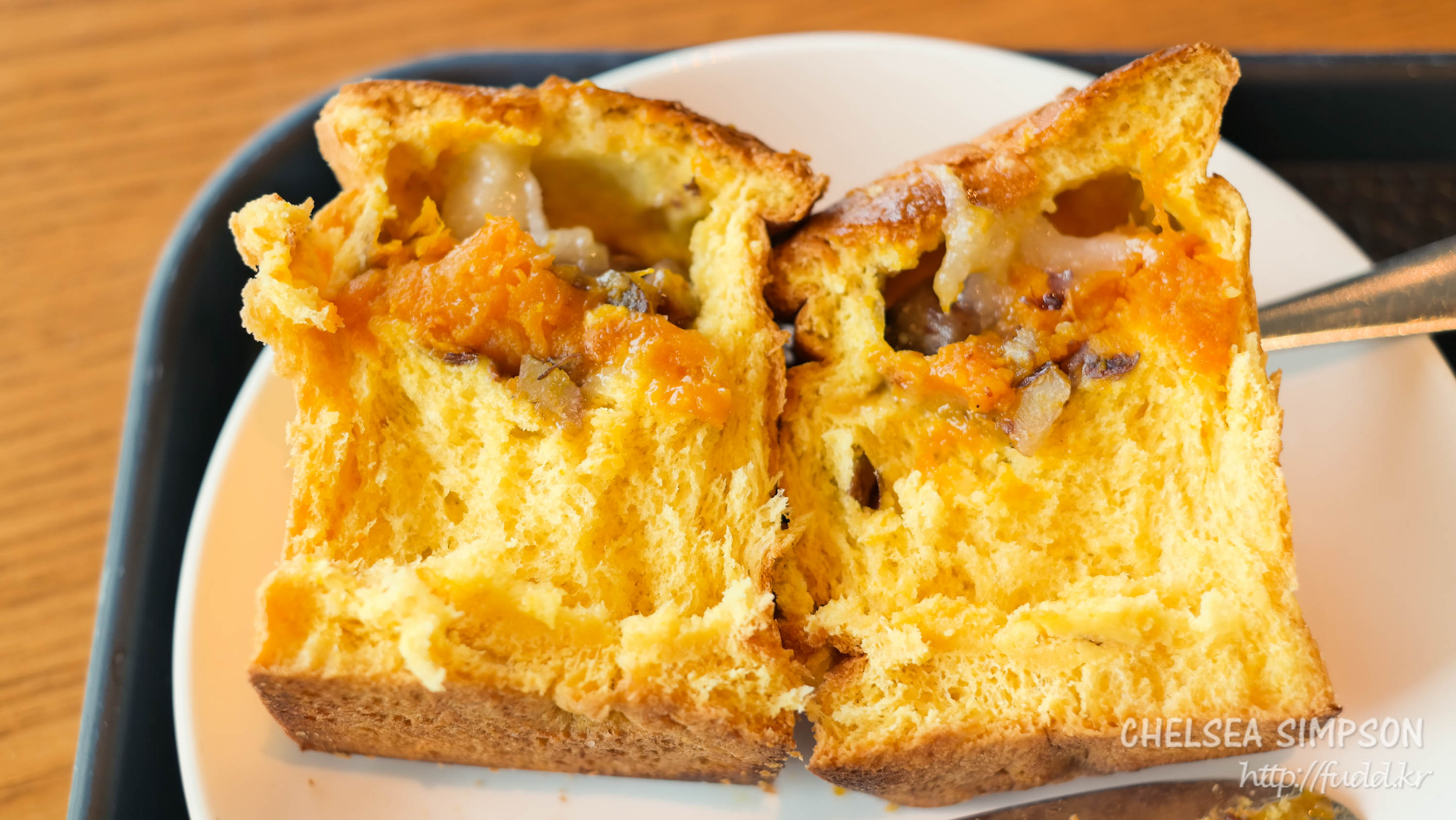 빵이 약간 질깃하고 그리 단단하지 않아서 스타벅스에서 주는 칼로 자르기 조금 번거롭긴 했다.